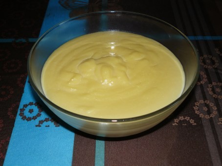 - Reverser dans la casserole l'ensemble et faire cuire à feu très doux en remuant sans arrêt avec une cuillère en bois. Quand la crème a épaissi, laisser bouillir quelques instants et retirer la casserole du feu (ne pas laisser attacher au fond de la casserole !!!).